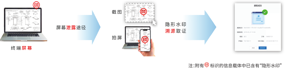 系統主要用于解決電子屏幕被拍照、攝錄、截屏泄露后的快速溯源難題。通過“電-光-電”跨媒介隱形水印技術,在屏幕嵌入不可見的溯源信息,一旦出現因對屏幕拍照、攝錄、截屏等造成的泄露,通過分析泄露數據中的隱藏信息,精準定位泄露源頭,形成巨大震懾,實現屏幕數據安全管控目的。